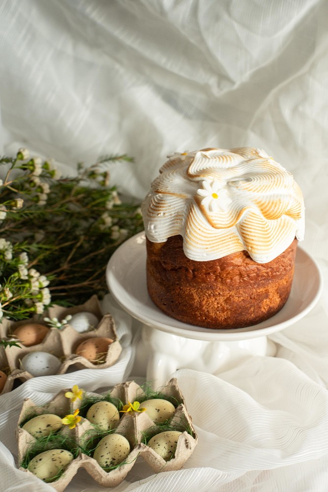 Проект представляет сет из трех миниатюрных куличей в глазури и воздушном безе: классический, с апельсиновой цедрой и с цукатами. В основе воздушное тесто на опаре, приготовленное по всем канонам. Ваниль и мускатный орех формируют узнаваемый пасхальный аромат, а мякиш получается пористым, сочным и по-настоящему пышным.