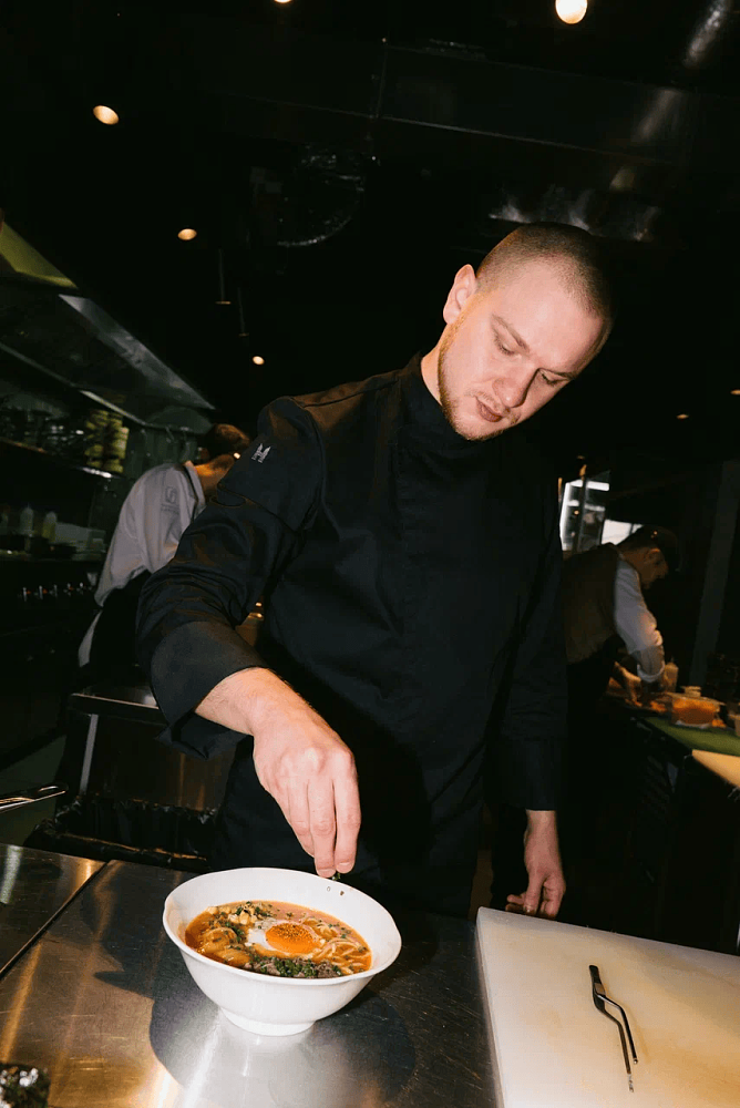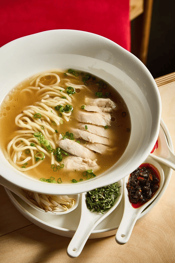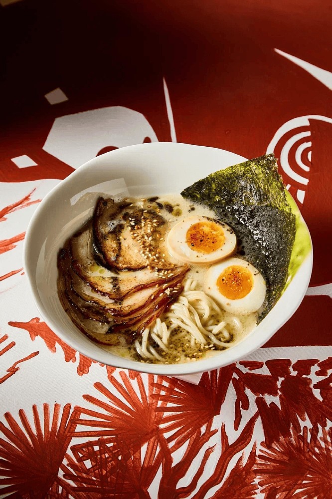 В основе меню — рамен как ключевой гастрономический символ проекта: команда предлагает семь видов супа с разными бульонами и вкусовыми профилями — от легких и прозрачных до насыщенных и пряных, с разнообразными топпингами. При этом концепция выходит за рамки монопродукта: бренд-шеф проекта Рустам Самедов, эксперт в японской, китайской и сингапурской кухне, дополнил меню стартерами, горячими закусками, роллами и хэнд-роллами, а также кантонскими димсамами, вонтонами с креветкой и гёдза с говядиной; среди горячих блюд — утка по-шанхайски, удоны и жареный рис тяхан с морепродуктами, курицей и говядиной, а на десерт — моти и тайяки — традиционное японское печенье в форме рыбки.