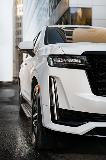 В новом Escalade сохраняются фирменные вертикальные световые элементы Cadillac, но добавляется также горизонтально расположенная передняя оптика, придающая модели сбалансированный и солидный вид. Задние фонари отличаются трехмерной внутренней структурой гравированными элементами. 22-дюймовые колеса входят в базовую комплектацию и подчеркивают брутальную внешность автомобиля.