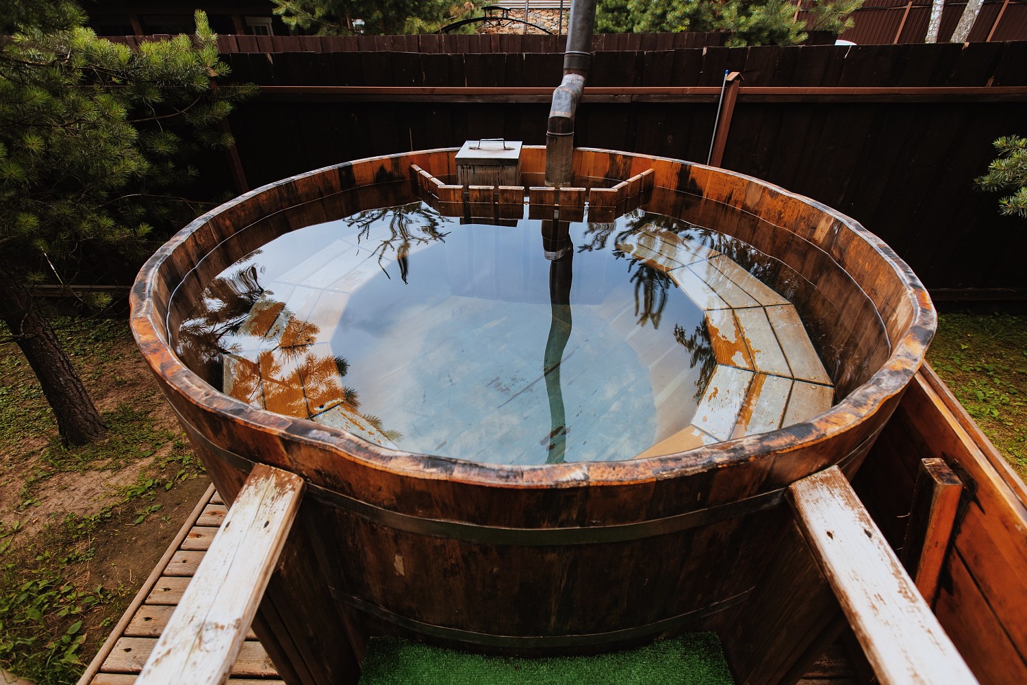 И какой же русский отдых без традиционной бани? Их на территории комплекса две! Здесь можно восстановить физические и душевные силы. Для удобства гостей в доме с баней расположена гостиная и обеденная зона, телевизор и даже караоке, а также полный перечень необходимых атрибутов – от непромокаемых тапочек и банных халатов до травяных матрасов и веников на любой вкус –дубового, березового, пихтового. Во дворе находится огромная деревянная купель: опытный банщик доведет воду в бочке до нужной температуры и при необходимости добавит расслабляющий или бодрящий травяной коктейль.