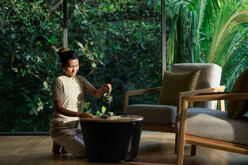 Элегантный минималистичный дизайн курорта был разработан сингапурской компанией Studiogoto. Все постройки на острове идеально вписаны в окружающий ландшафт, а в интерьерах преобладают спокойные естественные цвета.