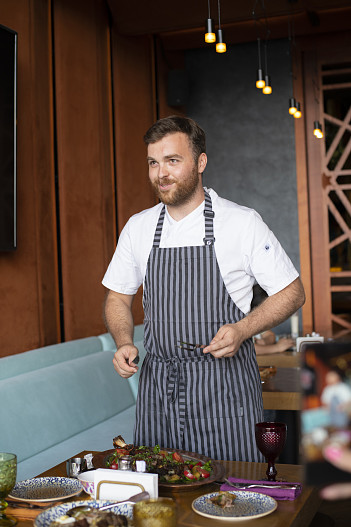 Фудпейринг — это течение в гастрокультуре, которое позволяет выходить за рамки простых сочетаний, объединяя обычные продукты в нестандартные комбинации. Ужин от шефа состоит из пяти блюд, среди них — кундюмы с квашенной капустой и соусом из томленного на топленом масле лука, говяжья щека, нежная перловка с соусом из белых грибов и мороженым из сметаны. 80% продуктов для ресторана закупается у местных производителей. Под каждое блюдо подается определённый напиток. Что именно намиксовал шеф-бармен Дмитрий Рябов, отгадать сложно. Например, в одном из коктейлей содержатся такие ингредиенты, как текила, бурбон, кефир, топленое молоко, барбарис, ананас и смородина. Звучит очень необычно!