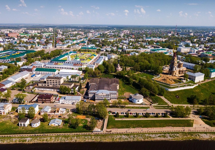 Этот город, недавно отметивший свое 870-летие, можно увидеть с высоты птичьего полета, поднявшись на колокольню собора Костромского Кремля, работы по возрождению ансамбля которого сейчас активно ведутся (предварительная запись обязательна).