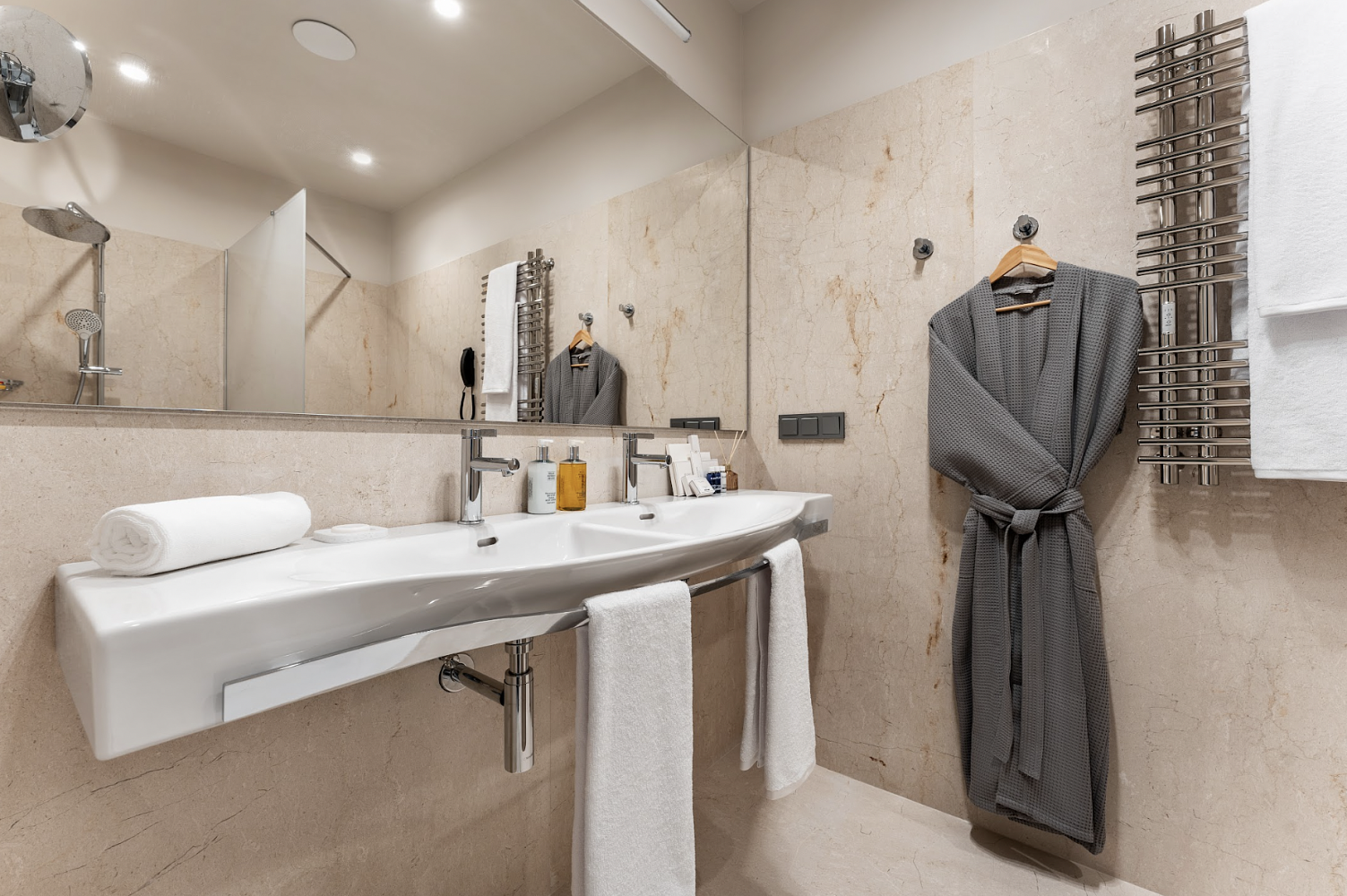 Санаторий предлагает 354 номера шести различных категорий, от стандартного до трехкомнатного люкса (площадью от 24 до 65 квадратных метров). Минималистичный дизайн и функциональное наполнение интерьеров поддерживают продолжают тренд на сонный туризм, обеспечивая гостям качественный, здоровый отдых. Для бронирования доступна также особая категория номеров — медсьюты, оборудованные инфракрасной сауной и массажными столами. К услугам гостей — персональный медицинский батлер, сопровождающий на всех этапах проживания.