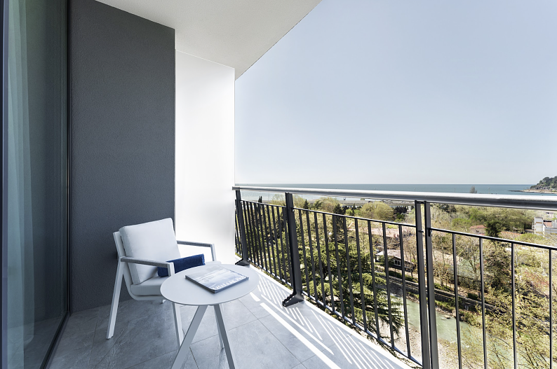 Футуристический облик здания с его плавными линиями и каскадными балконами, с которых открываются виды на море и горы, — отсылка к террасным полям и чайным плантациям, сохранившимся на территории нынешнего Сочи с античных времен. Слияние с природой — главный ландшафтный замысел проекта: зеленые маршруты для терренкура дополняет атриум с зимним садом внутри отеля, где на площади 320 квадратных метров разместилось 20 видов тропических растений. Оздоровительную программу санатория разнообразят продуманные зоны досуга — собственный пляж со спа-зонами, фитнес- центр, места отдыха у бассейна и на открытой террасе, салон красоты, детский клуб и бутик.