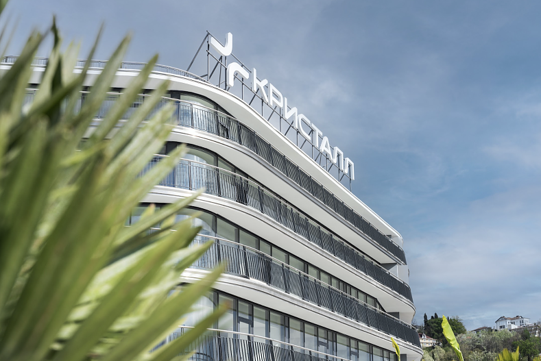 «Кристалл» — первый новый санаторий, построенный в Краснодарском крае с нуля более чем за четверть века. Объект располагается в 300 метрах от берега Черного моря, в окружении высоких сосен и цитрусовых деревьев, неподалеку от реликтовой тисо-самшитовой рощи. Санаторий объединил актуальные тренды курортного отдыха, это пространство, где гости могут остаться наедине с собой, сосредоточиться на своем здоровье, отдохнуть и наполниться энергией, а также обучиться и получить практические рекомендации о том, как закрепить результат лечебных программ.