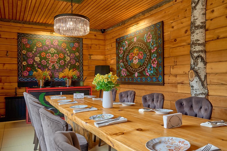 Поклонники традиционной русской кухни и местных деликатесов оценят уединенный ресторан-музей «Деревня» на маральнике, работающий по принципу «от фермы к столу», где большинство ингредиентов поступают с собственных хозяйств курорта. Интерьер ресторана воссоздает атмосферу старинной русской избы, с отделкой из натурального дерева березы и сосны. В дополнение к кулинарной концепции музейная часть интерьера демонстрирует винтажные артефакты: французские гобелены XIX века, белорусские народные картины «маляванки», изделия из болотинского стекла, включая оригинальные кувшины и штофы, а также ретрофотографии и предметы быта дореволюционной и советской эпох.