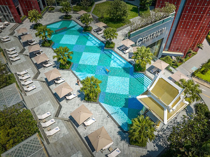 Отель Chatrium Grand Bangkok расположен в самом сердце престижного района Сиам — одного из главных центров городской жизни Бангкока, буквально в нескольких шагах от станции BTS Siam и легендарного «шопинг-кластера Сиама» — торговых комплексов Siam Paragon и CentralWorld. В целом, здесь можно и провести все майские: магазины любимых брендов, модные поп-апы, концепт-сторы местных дизайнеров, многочисленные кафе и закусочные, а еще выставки и фестивали.