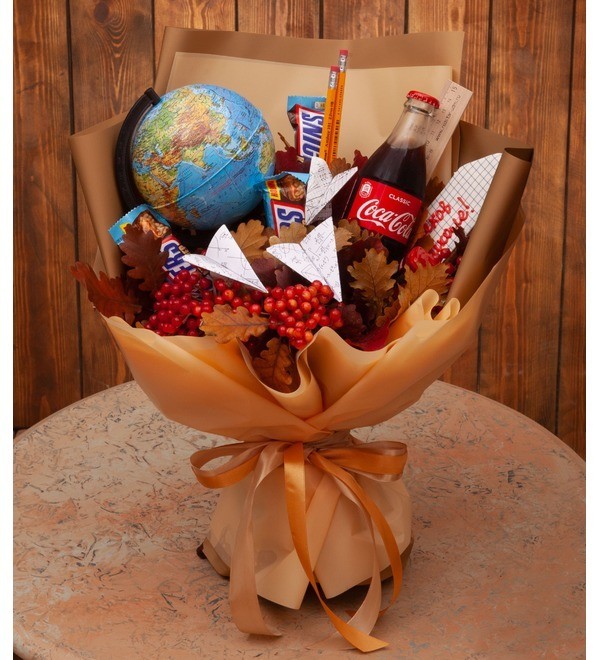 В этом году, кроме классических букетов в коллекции к 1 сентября, представлены креативные букеты с шоколадками, пряниками и другими сладостями, а также букеты и подарочные коробки с канцелярскими товарами в необычной упаковке в виде школьных тетрадей. Большой ассортимент предоставляет возможность выбора на любой вкус и возраст ученика.