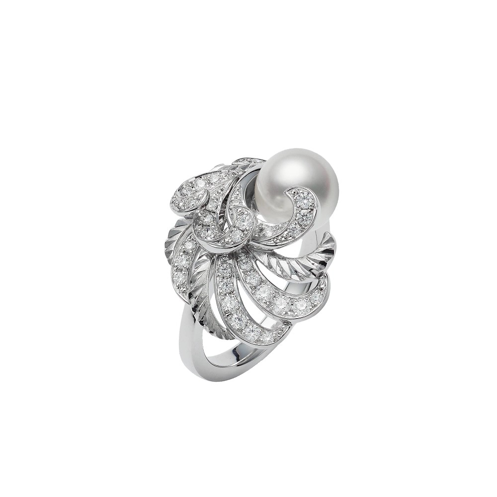 Вдохновением для новой коллекция Mikimoto Feather послужили мечты и надежды. Элегантные и воздушные украшения похожи на невесомые перья, легко кружащиеся в небе и тихо опускающиеся на землю. В коллекции представлены подвеска, кольцо и серьги из белого золота с культивированным жемчугом Акойя и бриллиантами.