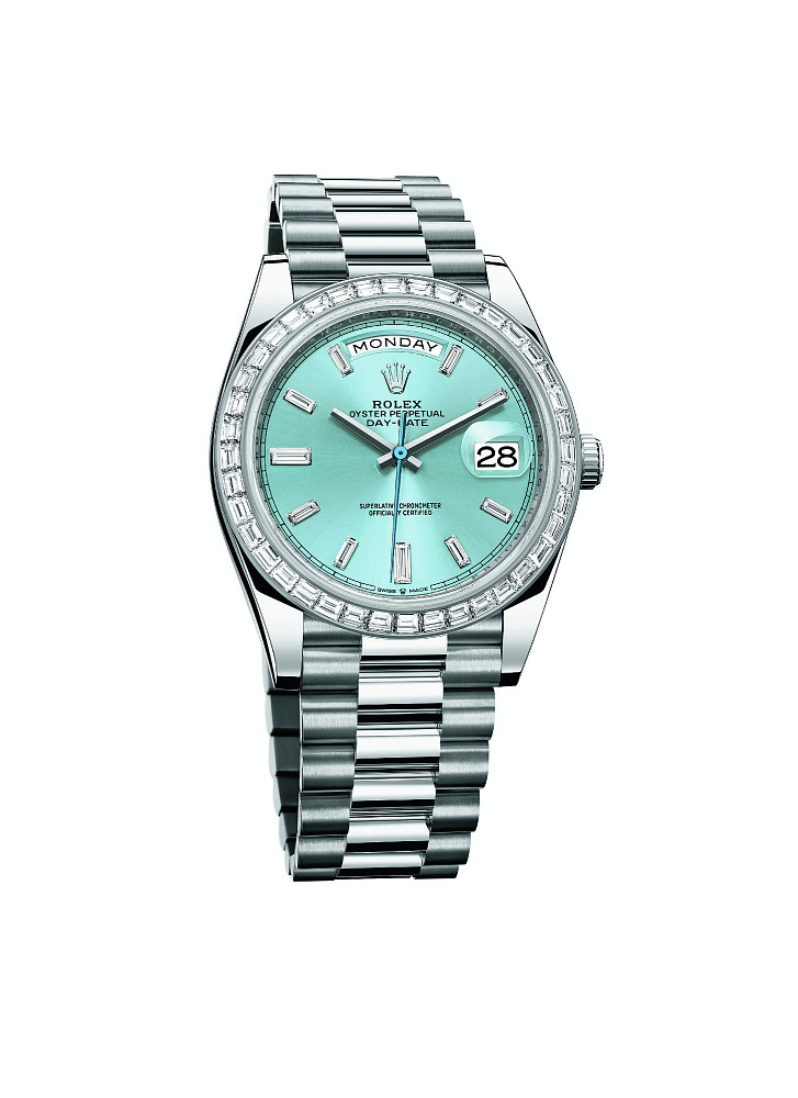Женская модель Rolex Oyster Perpetual Pearlmaster выполнена в 39-миллиметровом корпусе из золота Everose и полностью усыпана бриллиантами. Мужская модель Rolex Oyster Perpetual Day-Date 40 представлена в платиновом корпусе с бриллиантами багетной огранки по безелю. Роль часовых меток также выполняют бриллианты багетной огранки. Корпус элегантной модели Patek Philippe Calatrava Ref. 4899 сделан из белого золота и декорирован сапфирами разных тонов и бриллиантами. Циферблат украшен выгравированным вручную на перламутре мотивом в виде перьев. Мужская модель Pelagos FXD – плод сотрудничества часовой мануфактуры TUDOR с Военно-морскими силами Франции. Корпус диаметром 42 мм выполнен из титана и оснащен вращающимся в двух направлениях безелем со шкалой для обратного отсчета времени.