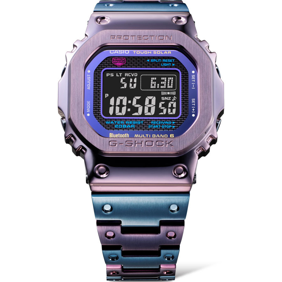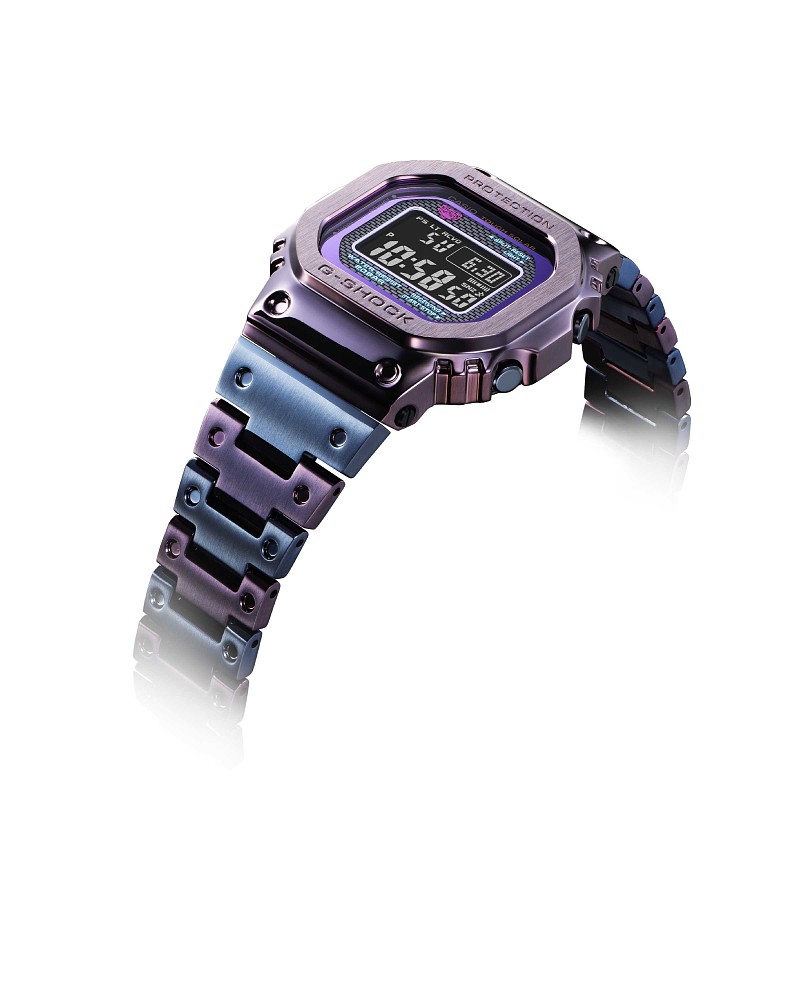 Новинка выполнена в заметной фиолетово-синей гамме. Эти цвета напоминают о сумеречном Токио — моменте, когда последние лучи заходящего солнца растворяются во тьме. Оригинальные тона созданы благодаря приглушенному ионному покрытию, которое подчеркивает фактуру металла и отличается повышенной износостойкостью. Часы с ударопрочной конструкцией унаследовали квадратный циферблат самых первых G-SHOCK. Они наделены солнечным питанием, корректируют точность хода через радиосигнал и представляют широкий набор дополнительных функций, доступных благодаря Bluetooth-синхронизации с приложением G-SHOCK Connected.