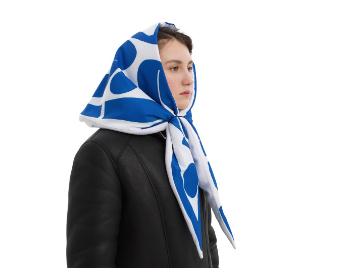 Специально к выставке «Великое искусство рядом. Шагал» художница Даша Агений создала лимитированную коллекцию аксессуаров. Вдохновленные графикой великого мастера, головные уборы Kosynkageniy разных цветов и с необычными узорами – отличный вариант для тех, кто хочет создать небанальный образ. И тепло, и стильно.