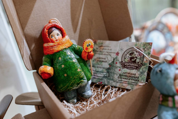 Фигурки из ваты и клейстера, такие, как были в детстве наших бабушек и дедушек, приехали в Москву с северодвинской мануфактуры. Фарфоровые фигурки мастерской Christmas Art расписаны вручную «под стекло». Забавные еноты, птички кардиналы, грецкие орехи и барабаны и даже Мышиный король из «Щелкунчика» — игрушки в винтажном стиле невольно вызывают улыбку. А зачарованные елочные шары от мастерской Климовых-Куимовых похожи на крохотные флорариумы, в которых обитают натуральные сухоцветы и растения, высушенные вручную. Такой подарок не захочется убирать в коробку после новогодних каникул, лучше оставить на виду как оригинальное украшение интерьера.