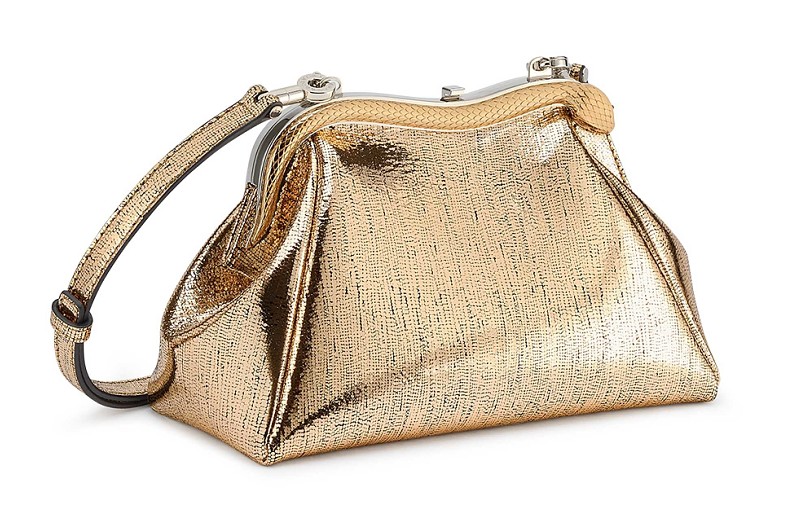 Дерзкая интерпретация неподвластного времени стиля, клатч Serpentine среднего размера из кожи теленка цвета античного золота с узором Liquid Metal с металлизированным и легким зернистым эффектом сочетает в себе актуальный мягкий силуэт и ювелирные детали, напоминающие об изящных движениях змеи. Сумка украшена каркасом в форме змеи из латуни с покрытием из розового золота, вдохновленным дерзкими колье Serpenti Heritage 1960-х годов. Модель объединяет в себе сразу несколько стилей: изогнутый верх с металлизированным эффектом дополнен выгравированными чешуйками и глазами из красной эмали спереди для роскошного акцента, а вставка из кожи теленка сзади придает дизайну непринужденность. Аксессуар имеет одно отделение, застежку-кнопку, кожаный ремешок и металлический логотип BULGARI сзади. 30 x 18 x 14 см. Сделано в Италии.