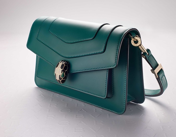 Неизменно актуальная маленькая сумка через плечо Serpenti Forever предстает в новой версии из изысканных материалов. Модель изготовлена из кожи теленка изумрудно-зеленого цвета. Сумка с цепочкой в виде змеи украшена знаменитой застежкой в форме змеиной головы, гипнотический дизайн которой вдохновлен творениями из ювелирной коллекции Serpenti 1960-х годов. Модель с одним отделением имеет карман для зеркальца, персонализируемое зеркальце и металлический логотип BULGARI сзади. 20 x 14 x 4,5 см. Сделано в Италии.