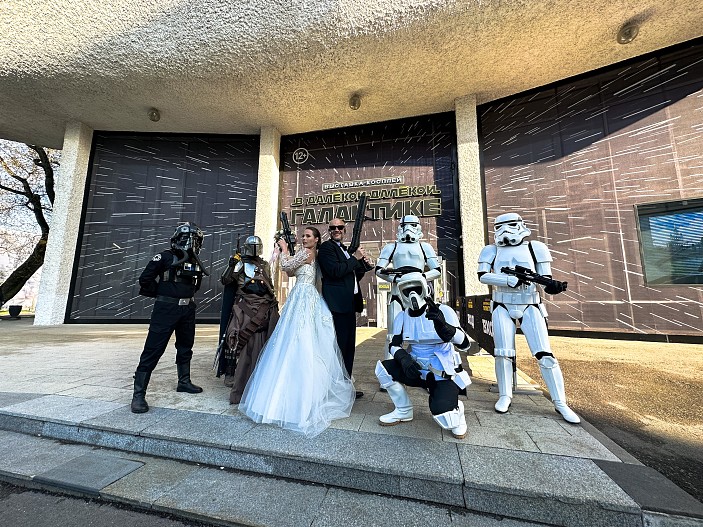 Целая Галактика станет свидетелем появления новой семьи. Кстати, молодоженам и фотографам в этот счастливый день вход на выставку бесплатный. Их гостям предложат шампанское, а незабываемая атмосфера «Звездных войн» сделает этот день особенным.