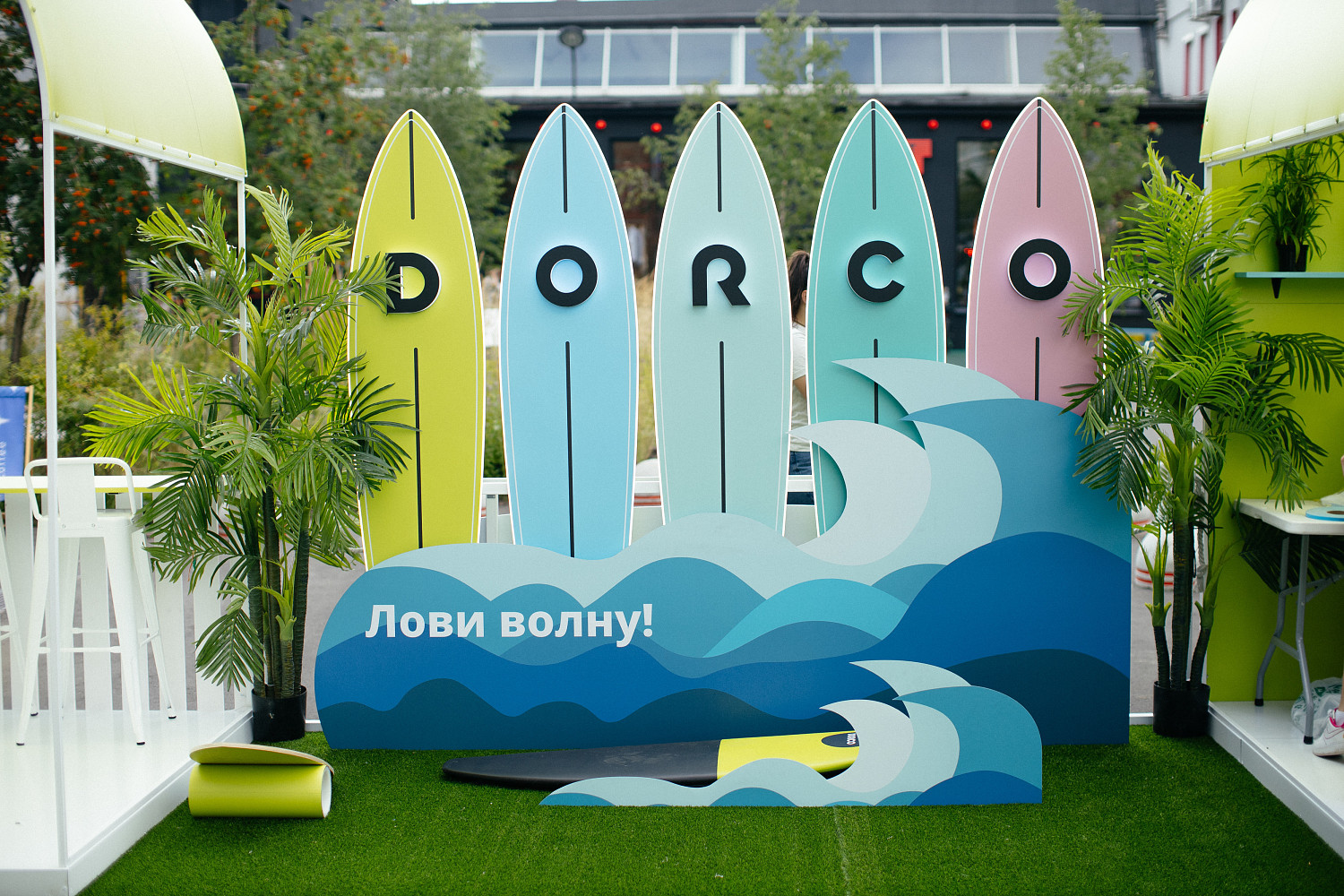 Но какой сёрфинг без волн? В тематической фотозоне гости смогут почувствовать себя на гребне волны и сделать крутые кадры на сёрфе.