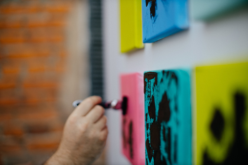 Он творчески переосмыслил привычные движения людей во время бритья и создал 30 абстрактных картин на холстах в цветах бренда, используя экспериментальную технику. Чернила дополнили станки DORCO — художник показал, что любой обыденный предмет может вдохновить и стать инструментом для создания объекта искусства.