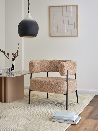 Кресло с буклированной обивкой цвета миндального молока идеально вписывается в современные стили интерьера: минимализм, сканди, шебби-шик, фьюжн и другие. У кресла — мягкая обивка из буклированной ткани с легкими завитками, а устойчивые стальные ножки имеют порошковое покрытие, которое защищает их поверхность от коррозии и механических повреждений. Рекомендуется регулярно пылесосить мебель с помощью специальной насадки – резиновой или мягкой щетки. Образовавшиеся пятна можно удалять губкой или салфеткой со слабым мыльным раствором воды. Продается в магазине Designboom.