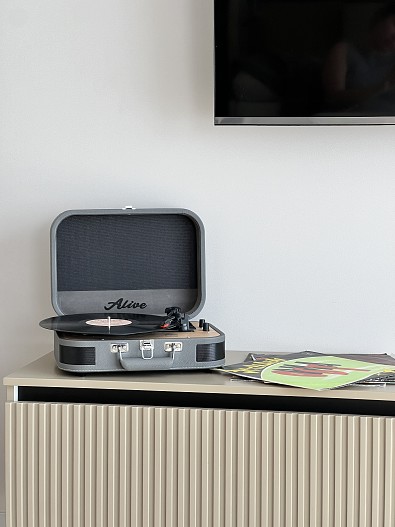 Современные проигрыватели, такие как модель Liberty от Alive Audio, делают аналоговый звук доступным и удобным. Устройство сочетает в себе эстетику винтажа с возможностями XXI века: встроенные динамики, Bluetooth для подключения телефона и компактный дизайн. Его можно взять с собой в путешествие или использовать дома как стильный элемент интерьера.