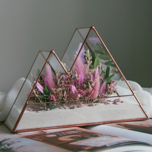 Любителям помечтать или рефлексировать о детстве подойдет эстетика dreamcore. Для декора в этом стиле выбирайте сюрреалистические элементы, напоминающие сюжеты мультфильмов или сказок. Например, на полки и тумбочки можно поставить фигурки любимых персонажей, декор в виде облаков, крыльев, цветов или радуги. Если хочется погрузиться в измерение эльфов, живущих в таинственных лесах, стилизуйте праздничный стол флорариумом и горшечными растениями со свисающими листьями — например, папоротниками. Поддержат волшебную атмосферу мыльные пузыри. Можно раздать флакончики гостям или арендовать на вечер специальный аппарат.